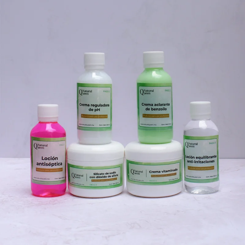 Sabemos que algunas partes del cuerpo son más propensas a presentar hiperpigmentación con el paso del tiempo, con nuestro kit de aclarado corporal Natural Queen, podrás devolver el color natural de la piel en muy poco tiempo. *Se pueden ver resultados desde la primera aplicación, sin embargo se recomiendan de 2 a 3 sesiones, con al menos dos días de diferencia. Contraindicaciones: No aplicar en zonas intimas. No exceder el número de aplicaciones.